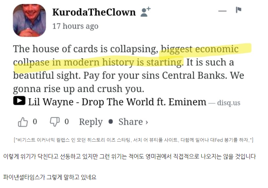 중국에서 가장 먼저 거품이 무너질 줄 알았지만 현실은 영미권이 더했다.