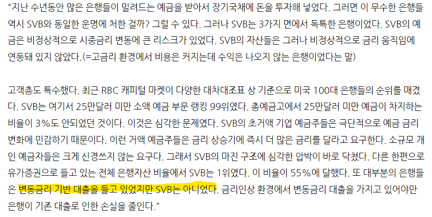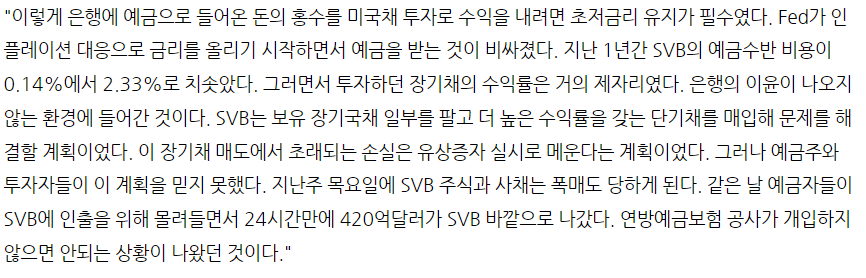 최근 svb로 인해 HTM(만기보유증권 : 만기까지 팔 생각이 없는 자산)을 다른 은행이 던지며 현금화 하는 사태가 벌어질 까봐 많은 시장 참여자들이 걱정을 하고 있습니다.