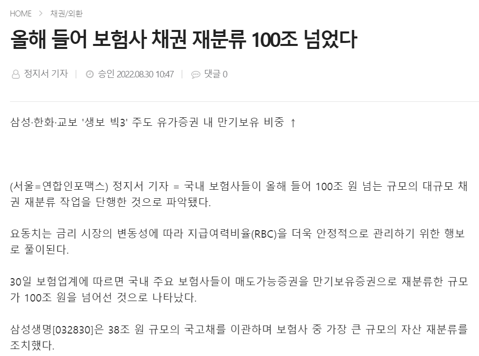 + 사실 한국 보험사들의 채권의 상태도 그렇게 좋지 않습니다.