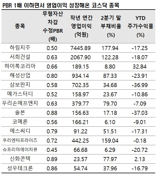 PBR 1배 이하이면서 영업이익 성장해온 코스닥 종목