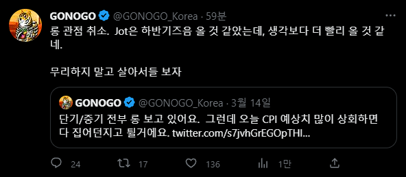 개인적인 견해로는 이번주 수요일에 한국 CPI 발표니까 한번 기회를 줄텐데 현금 비중을 늘리겠음