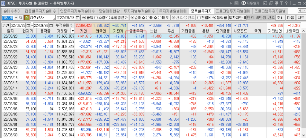 삼전 오늘 밀린거 치고 삼전에서 금투가 조용했습니다.