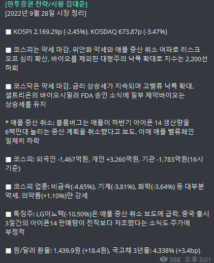 아이폰 감산이 코스피를 죽였습니다.