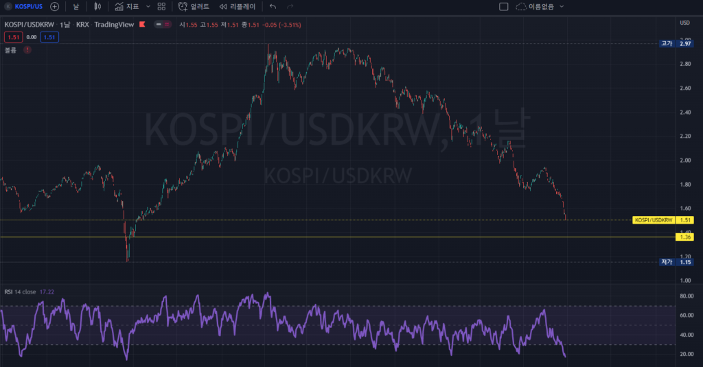 일단 USD/KRW를 보고있는데 움직임은 없네요.