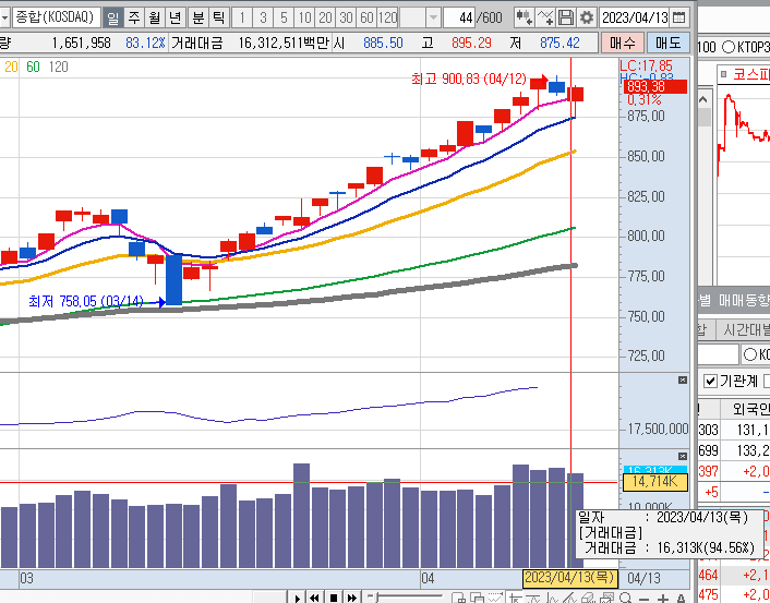 물론 코스닥 일봉이 조금 섬뜩하긴한데.. 아마 지수 상승은 더 이상 없을 것 같고 키맞추기가 발생하지 않을까 싶네요.