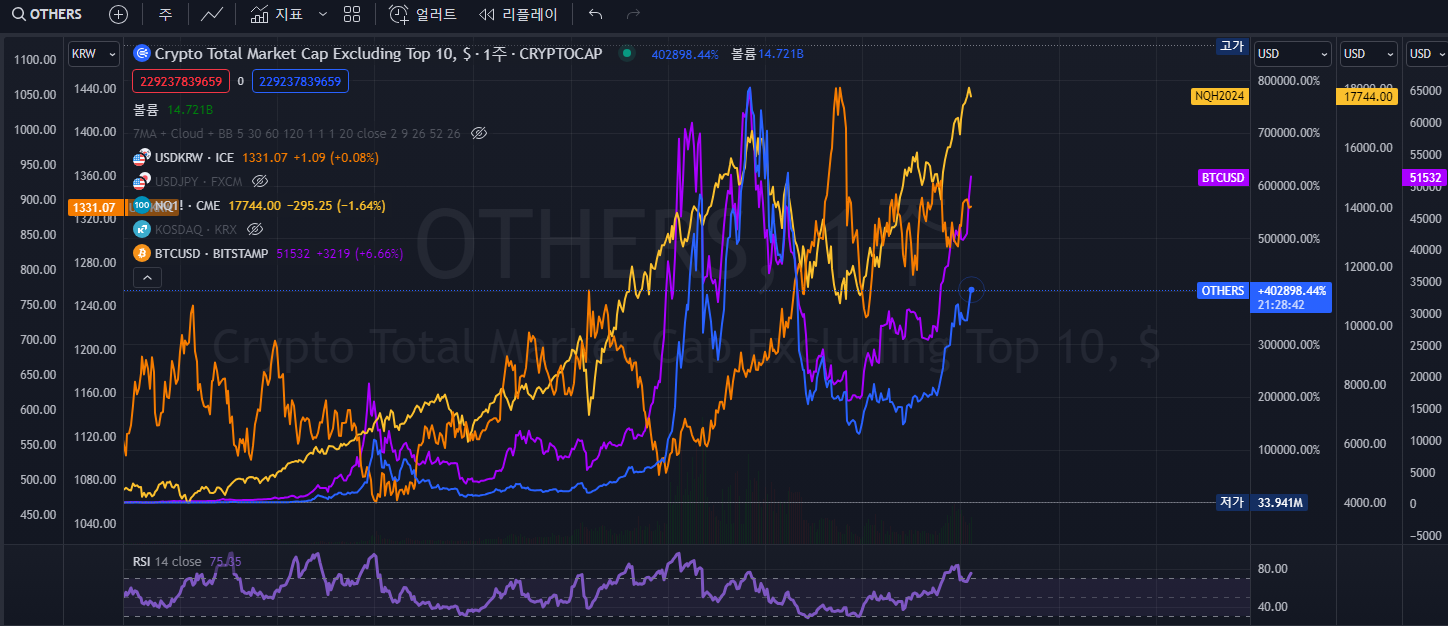 => 이번 비트 상승은 ETF와 같은 기관의 유입 > 그렇다면 ALT는 이를 이번에는 후행성으로 따라 잡을 것인가?