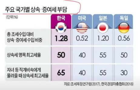 조세대비 상속/증여세 비중을 봐라 1.28이라는 미친 숫자가 나온다.
