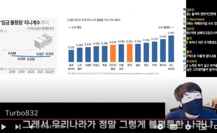 그리고 소득 불평등 지수를 보면 생각보다 한국은 불평등하지는 않다.