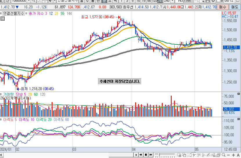 참고로 매물대는 360이평이어서 그렇지 일봉으로 보면 문제는 없습니다.