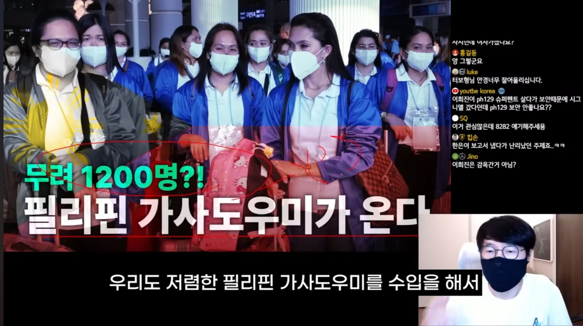 한국어 시험도 보고 마약중독 확인 함 필리핀 이모님들은 한국에 오고싶어 함 필리핀 대졸자보다 많이 범 문제는 최저임금을 주면 200인데 이게 말이 안되는데 대한민국 중위소득 470인데 여기서 200을 까면 답이 없다. 문제는 한국 가사노동자분들과 대립도 있음