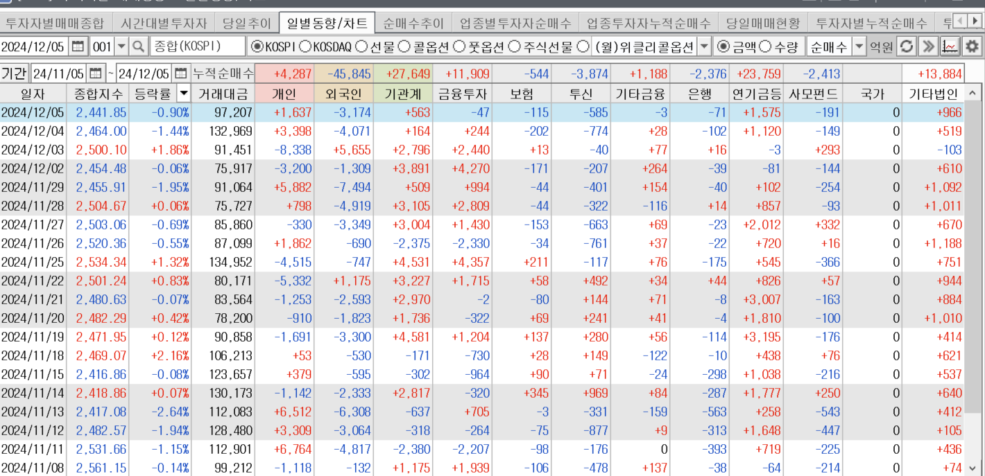 금투, 기법, 연기금이 열심히 줍줍하고 있습니다 외인은 팔고 있고요,