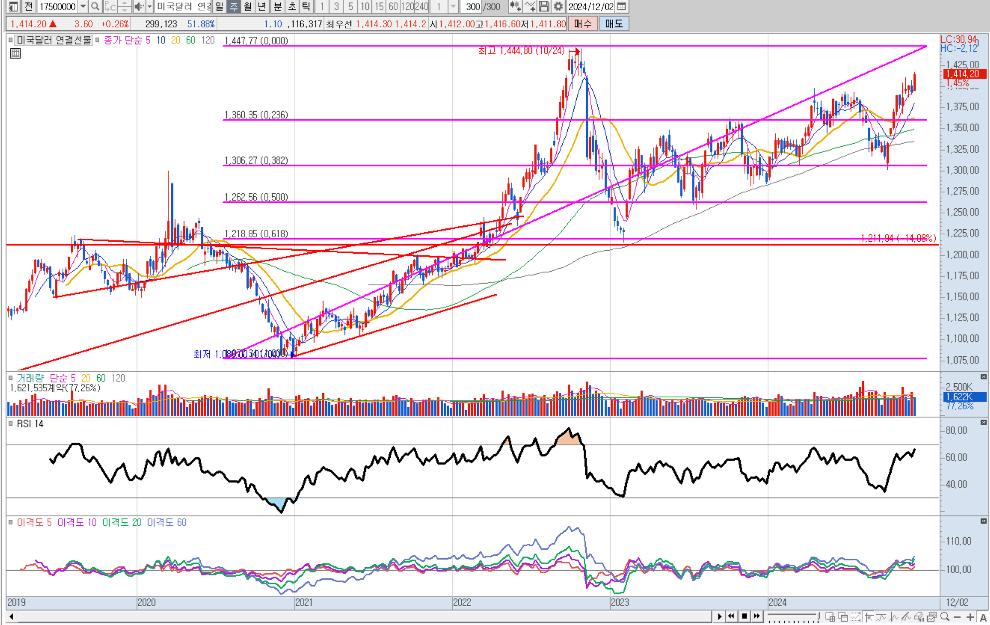 원화의 고점이 거의 왔다고 생각은 합니다. 1380 라인에 온다고 생각합니다. 아마 해당 레벨이 뉴노멀이 되지 않을까 싶습니다.