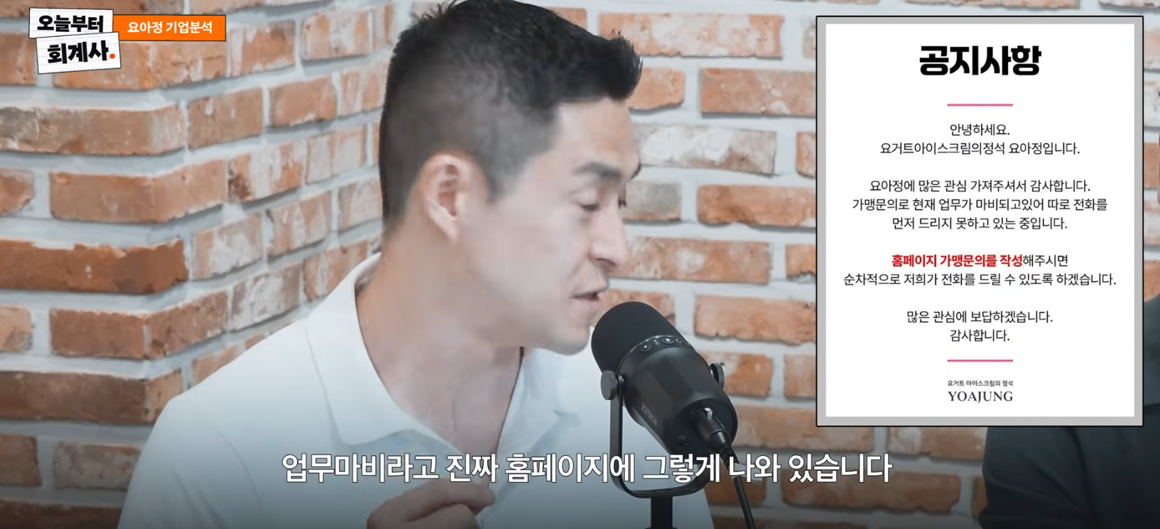 요아정 같은 프렌차이즈는 소자본 창업이 가능 => 골목길에 있으니까 그래서 가맹의 허들이 낮기에 너도나도 하기를 원함