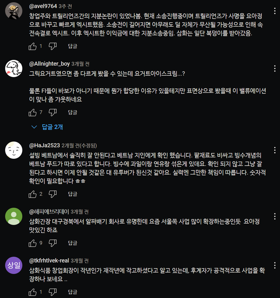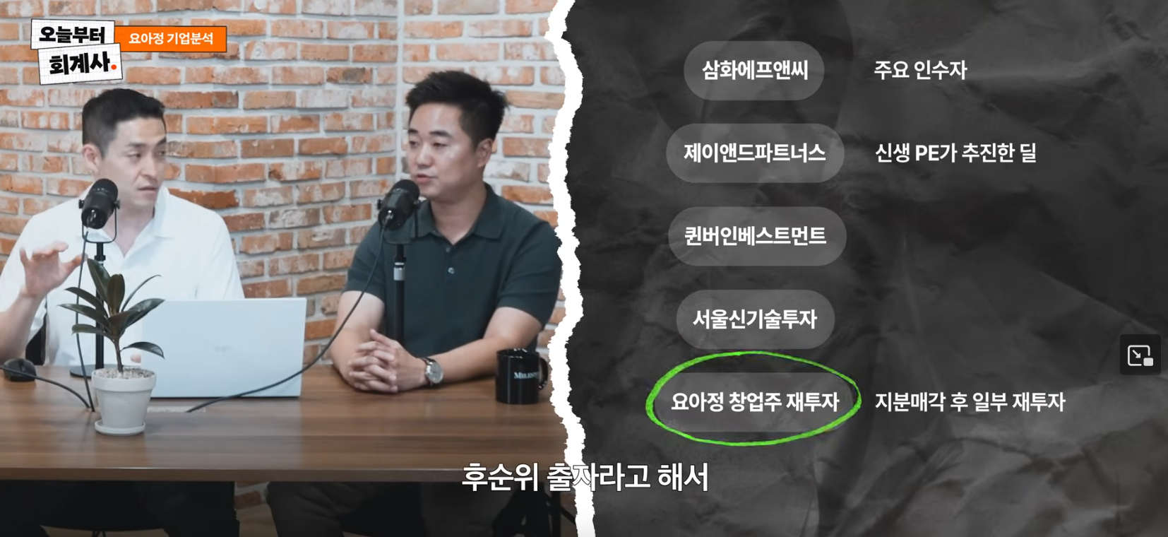 삼화식품이 인수금액에 75%를 차지 함 / 참고로 요아정 창업주도 재투자함 “SPC”에