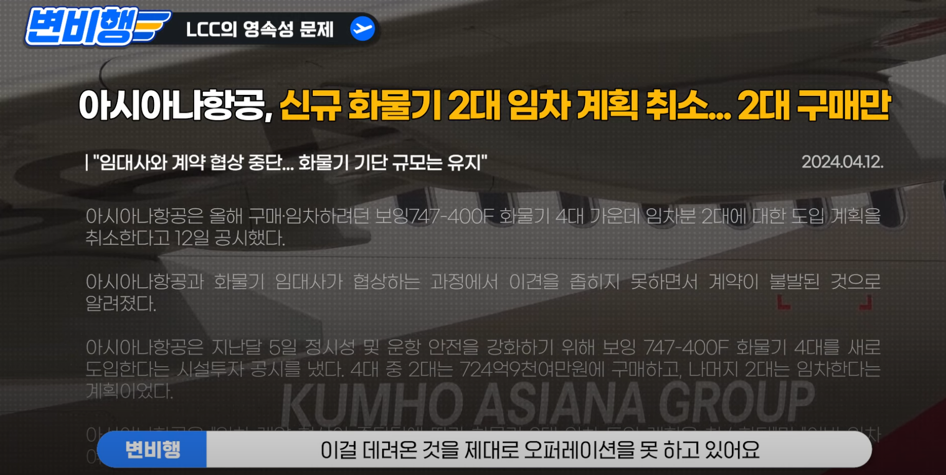 웃긴건 아시아나 직원들은 대한항공 직원이 되는 줄 알았으나 화물은 에어인천으로 가게 되었고 조종사들 일부는 통합 LCC (에어부산, 진에어, 에어서울)