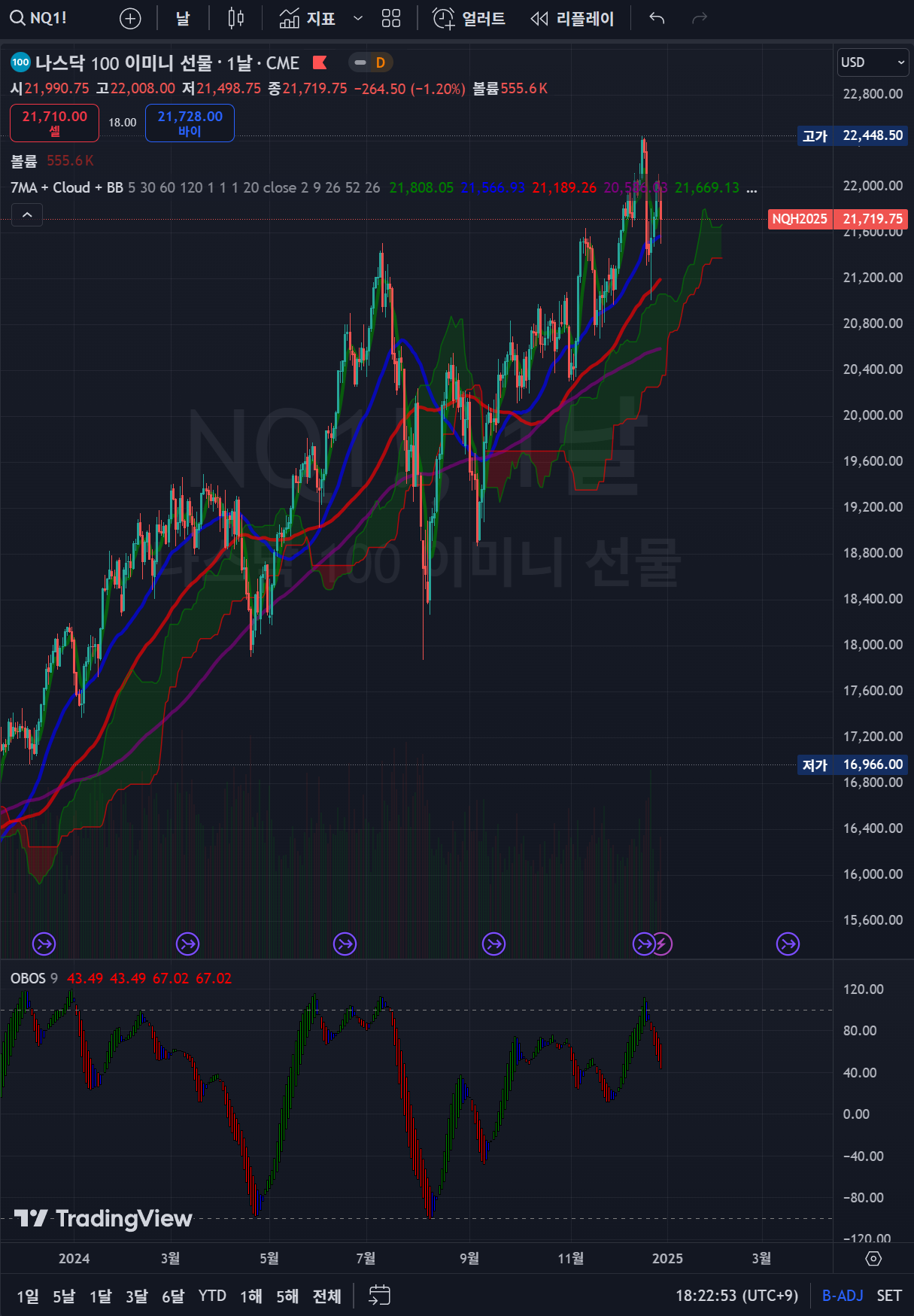 개인적으로 미 증시 자체를 지금 부정적으로 보고 있긴 합니다.. 갈수록 힘이 부족해지는 느낌? 전세계의 총알이 부족해지는 느낌입니다. 그래서 딱히 그렇게 급상승 할 것 같다는 아닌 것 같습니다. 그리고 상위주의 상승이 지수 상승분에 너무나 큰 영향을 미치고 있습니다. 그래서 돈이 몰려서 지수가 오른 것은 사실인데 벨류가 좋냐고 하면 더이상은 아니라고 생각합니다. 아마 미국이 곧 체질계선을 트럼프/일론 행정부가 강하게 밀어 붙을 것 같은데 그러면 전체적으로 좋은 영향도 있겠지만 나쁜 영향도 있긴 합니다만. 좋은 영향이 지속되어 미부채 문제를 어떻게든 하지 않을까 싶습니다.