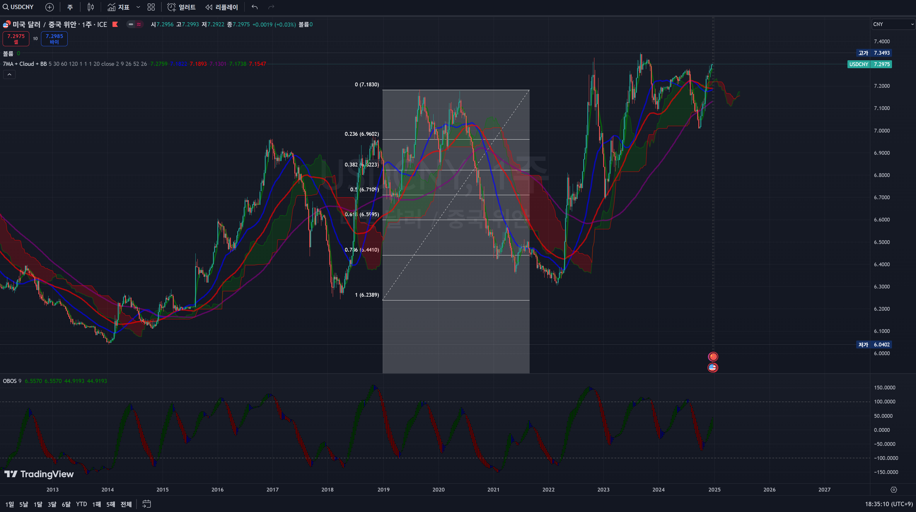 강달러가 끝나고 위안화 가치가 좋아져아하는데 트럼프라는 변수 및 대내외 상황이 매우 복잡해서 환율은 당분간 계속 High level 를 유지할 것 같고 하지만 거의 다온 것은 사실