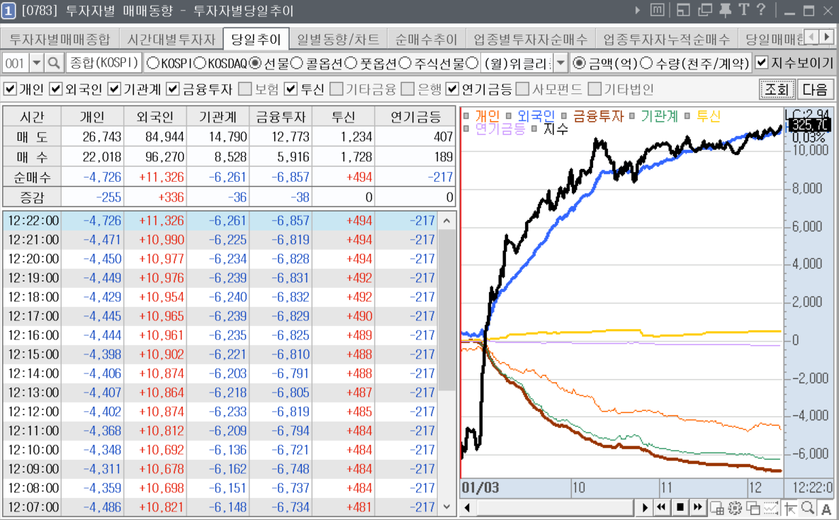 일단 외인이 1조 매수를 지금 시간까지는 하고 있는데 흠… 이게 장마감까지 갈지가 의문입니다. 뭔가 급해보이거든요