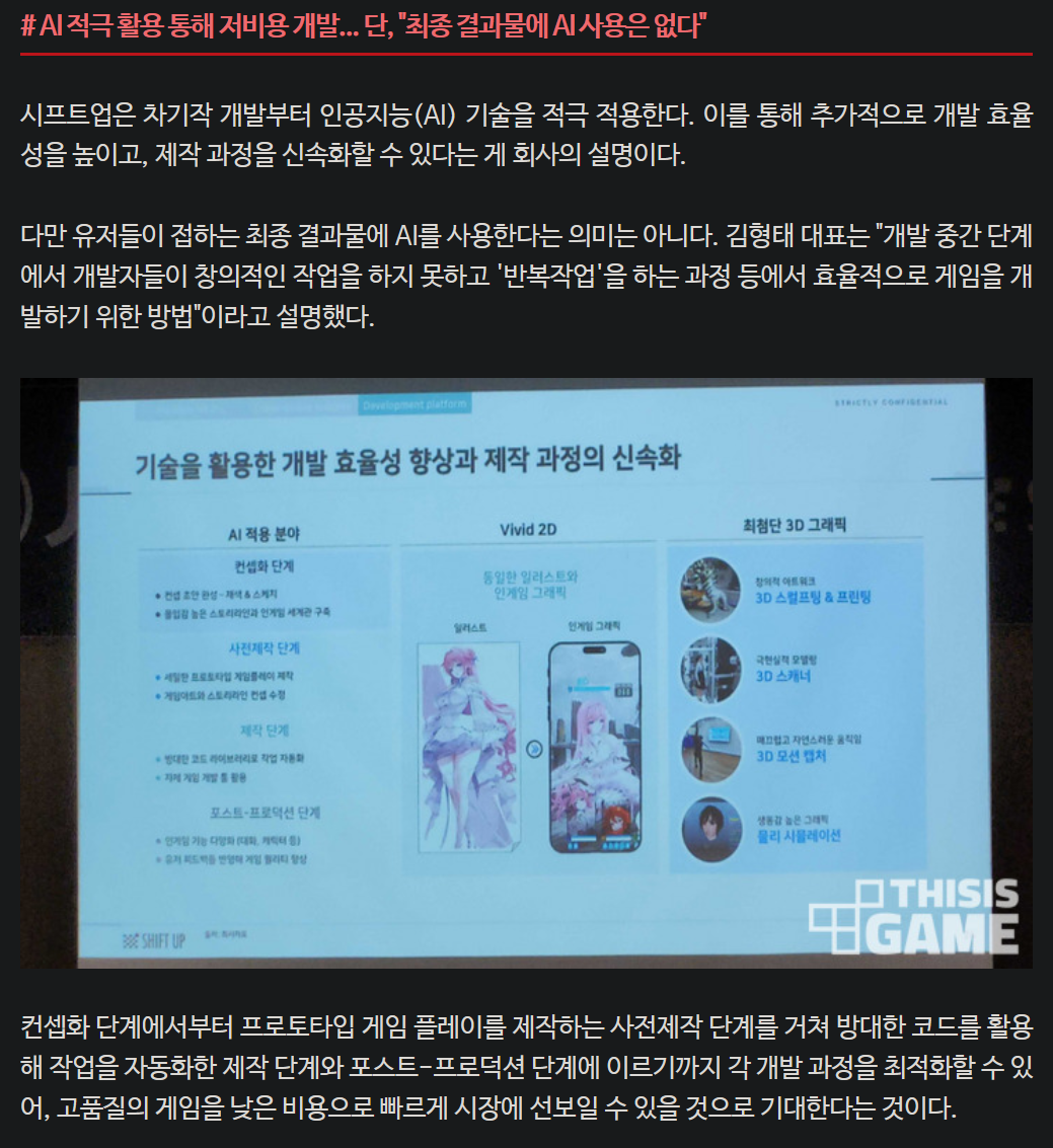 중국 진출 역시 문제 없이 진행 중이며 AI를 활용한 개발 기간 단축을 이끌어 낸다고 함