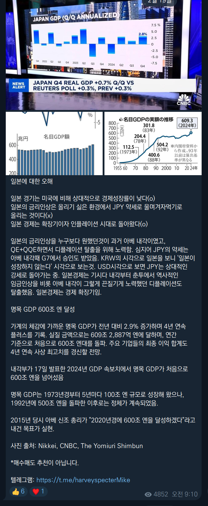 실제로 일본 경기가 나쁘지 않기 때문에 무시할 이야기는 아니라고 생각합니다.