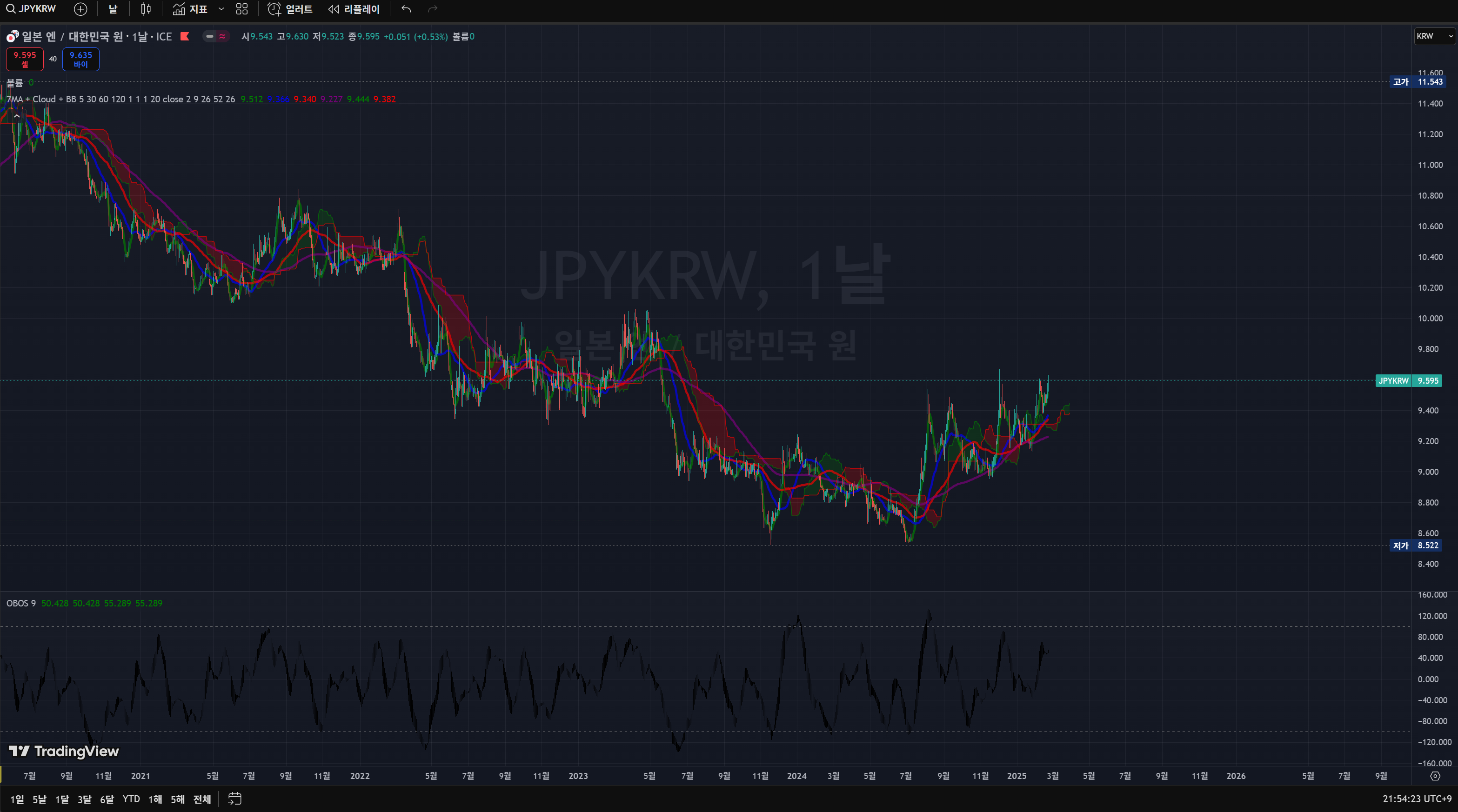 이머징 시장에서 KRW의 아웃퍼폼을 보는 방법은 간단합니다. JPY랑 비교하면 됩니다.