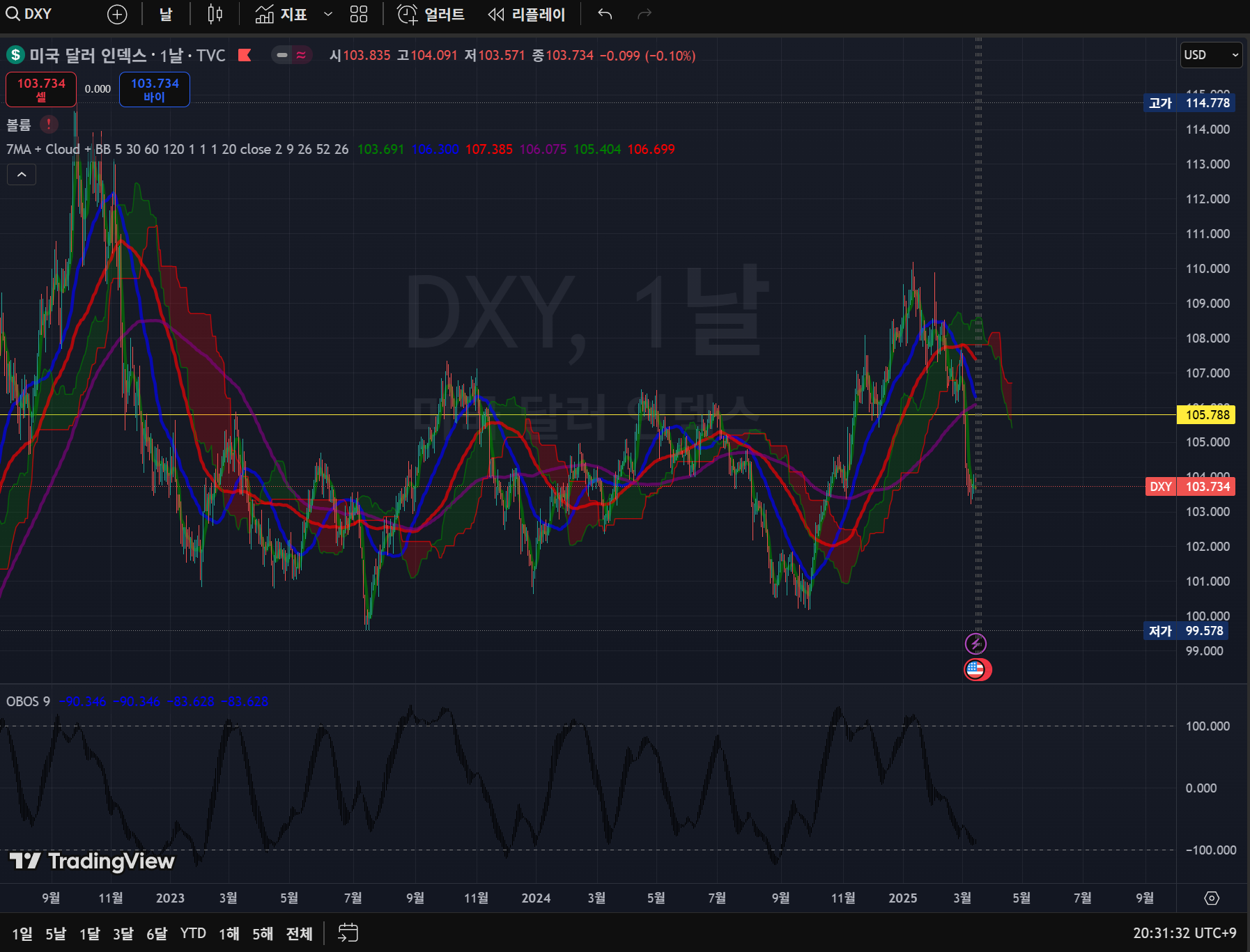 - DXY가 내려갔으니까.. 올라갈 수 있지 않을까