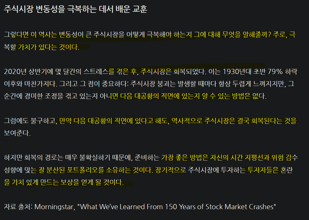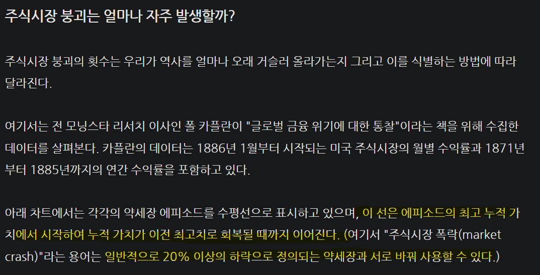 - 주식시장이 붕괴에서 회복하는데 얼마나 걸릴지 예측하는 것은 불가능하다
