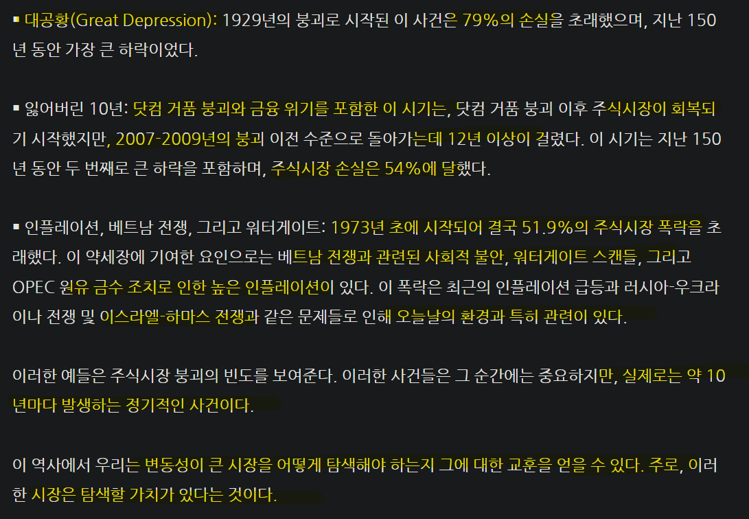 하락장의 길이와 심각성은 다양했지만, 주식시장은 항상 회복되어 새로운 최고치를 기록했다.