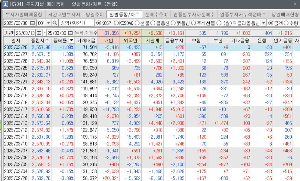 누적으로 보면 애초에 외인은 크게 뺄 생각이 없었습니다..