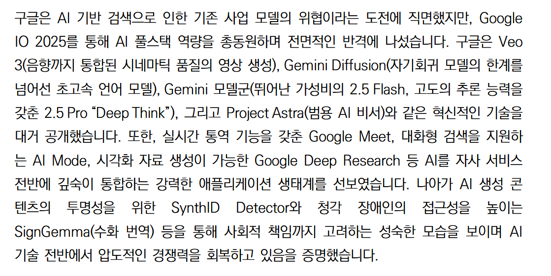 AI Overviews 역시 과거에는 부정확하거나 과대 포장된 정보로 이냏 신뢰성에 의문이 제기되었지만 이제는 월 15억 명 이상이 사용하는 핵심 기능으로 성장했다.