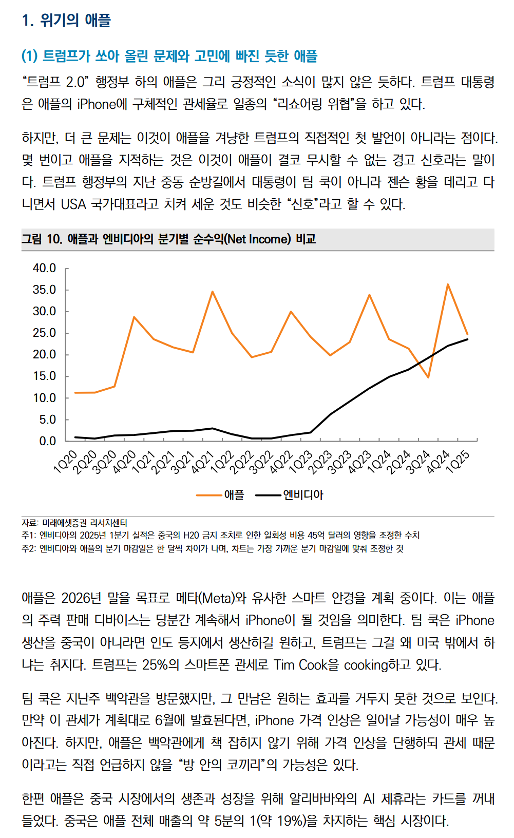 쉽게 이야기하면 트럼프로 인한 리쇼어링 위협을 받고 있고 애플은 백악관에게 눈치를 보며 가격 인상의 원인을 관세라고 직접 언급하지 않을 “방 안의 코끼리”의 가능성이 있음
