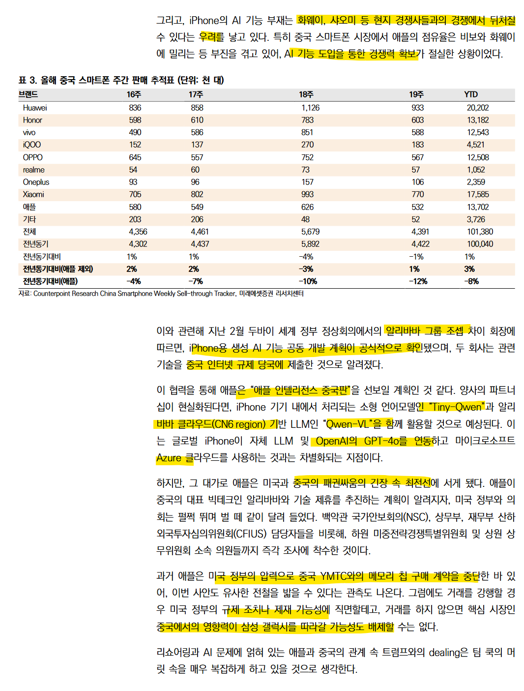 중국시장은 애플의 매출에 19% 정도 쉐어를 가지는 중요한 시장