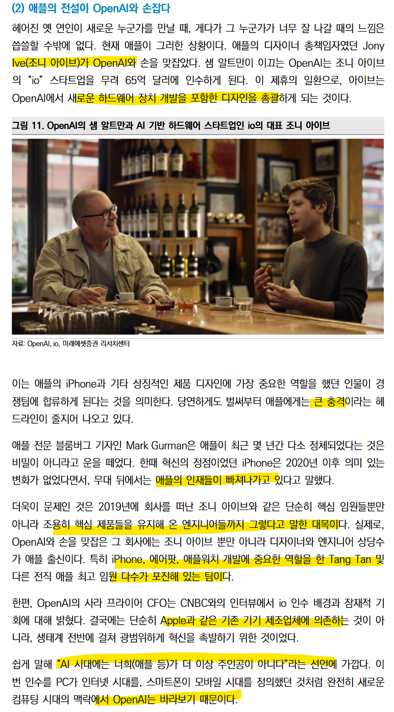 애플의 입장에서 OpenAi의 “io”인수는 말도 안되는 금액으로 인수해서 어안이 벙벙한 상태…