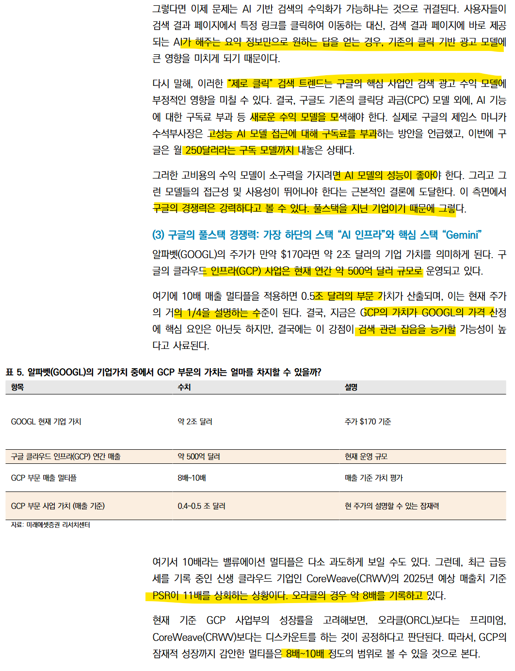 결국 구글의 주가는 어떻게 다시 평가해야하냐라는 질문에는 바로 GCP를 보면 된다. 대충 멀티플 먹이면 1/4… 즉 4배 더 올라야한다는 것이다.