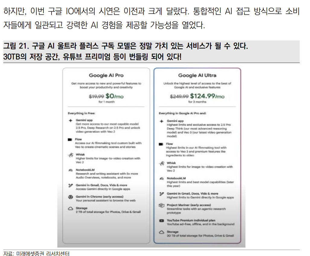특히 250달러의 AI Premium에는 Youtube Premium과 30TB Google Cloud 역시 포함되어 있다.