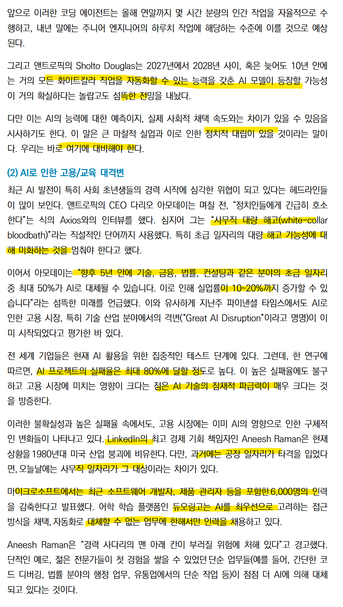 이제는 AI로 인한 화이트 컬러의 해고가 발생