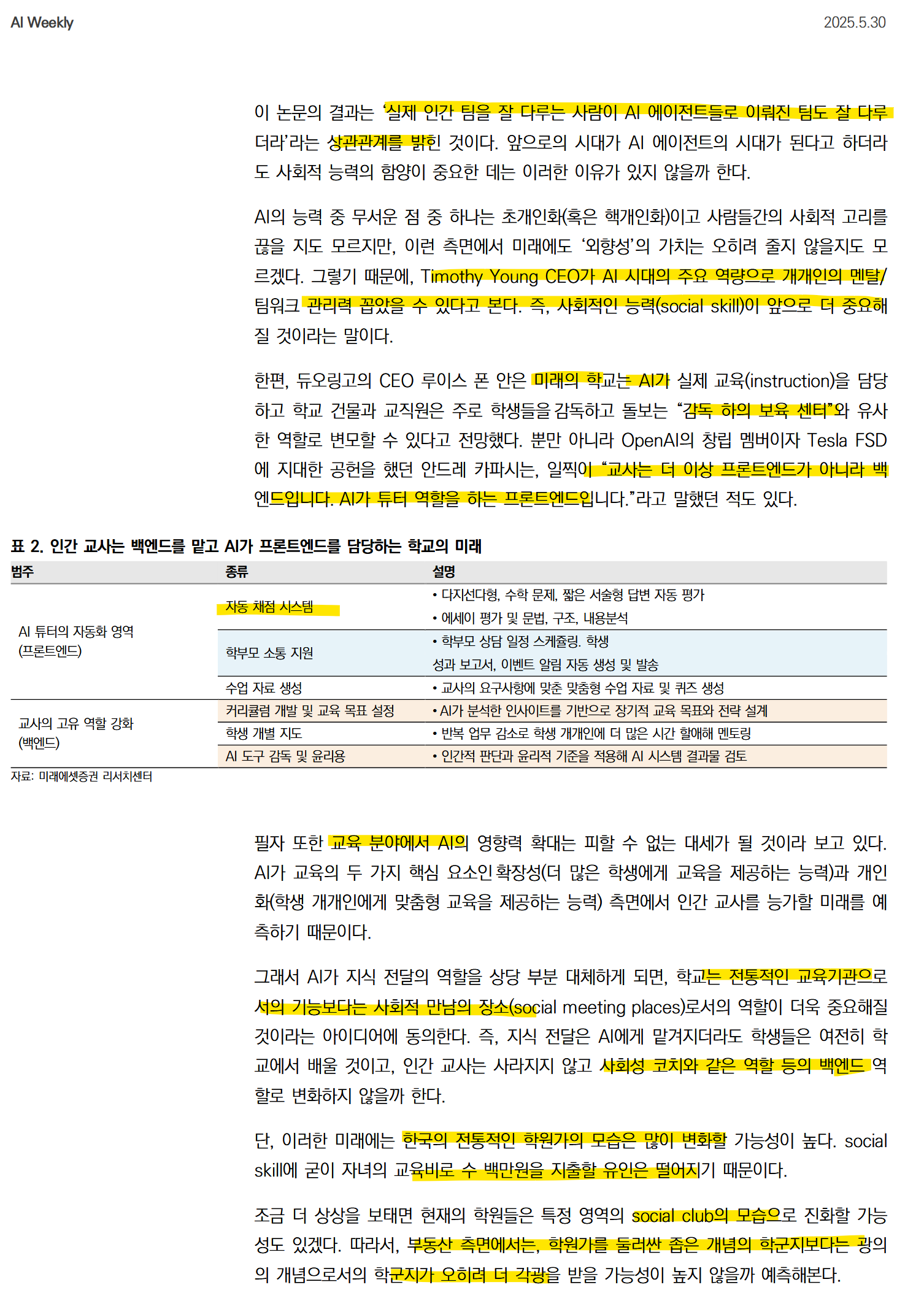 학원은 이제 사회성 코치의 역할 즉 벡엔드의 역할로 변화