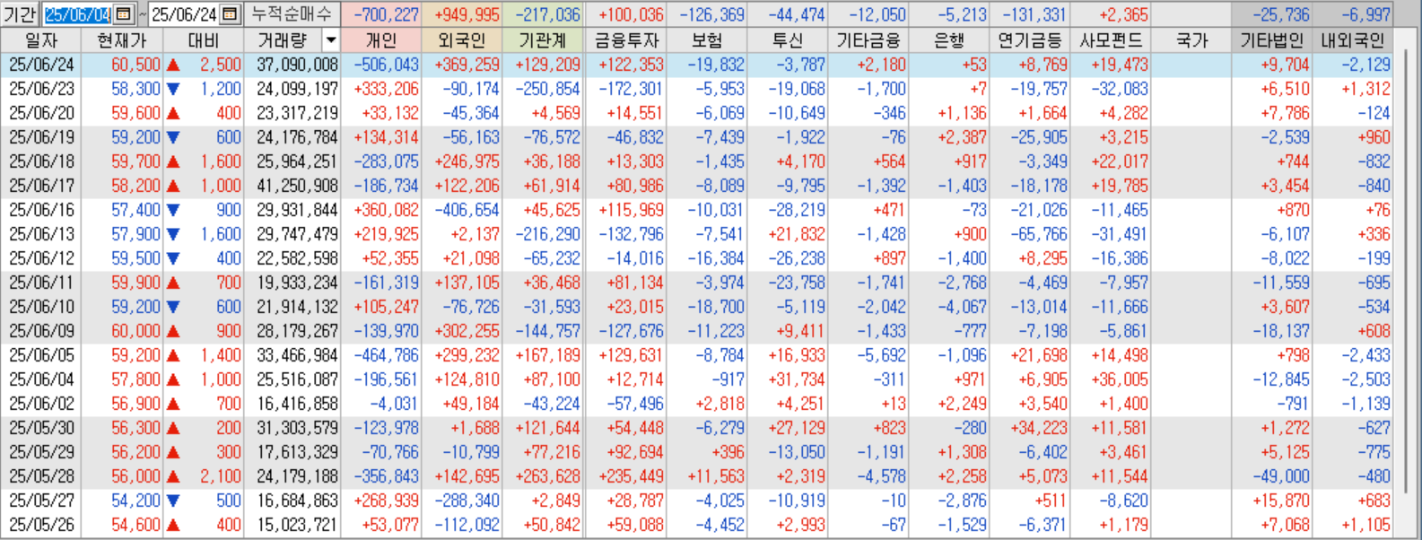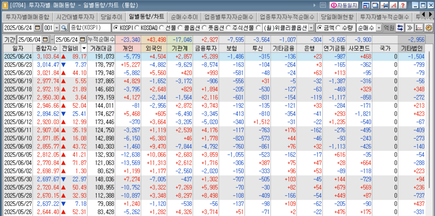핵심은 저 기간 동안 삼전의 순매수액이 얼마냐가 핵심입니다.