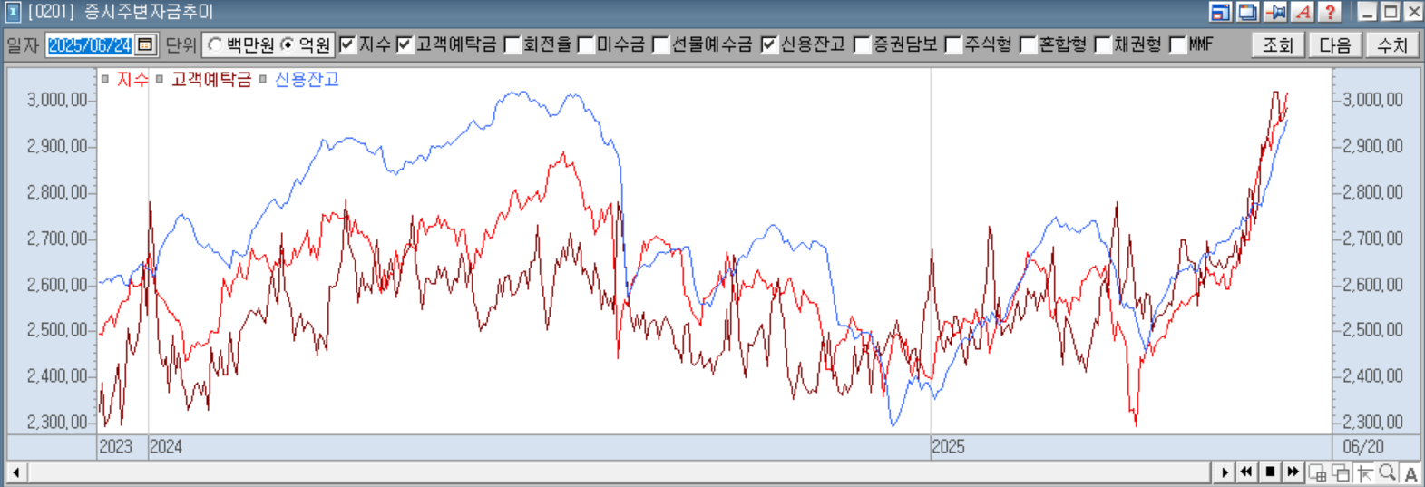 일단 예탁금과 신용잔고가 늘고 있는 것을 보아하니 지금 장이 미친 것은 확실합니다.