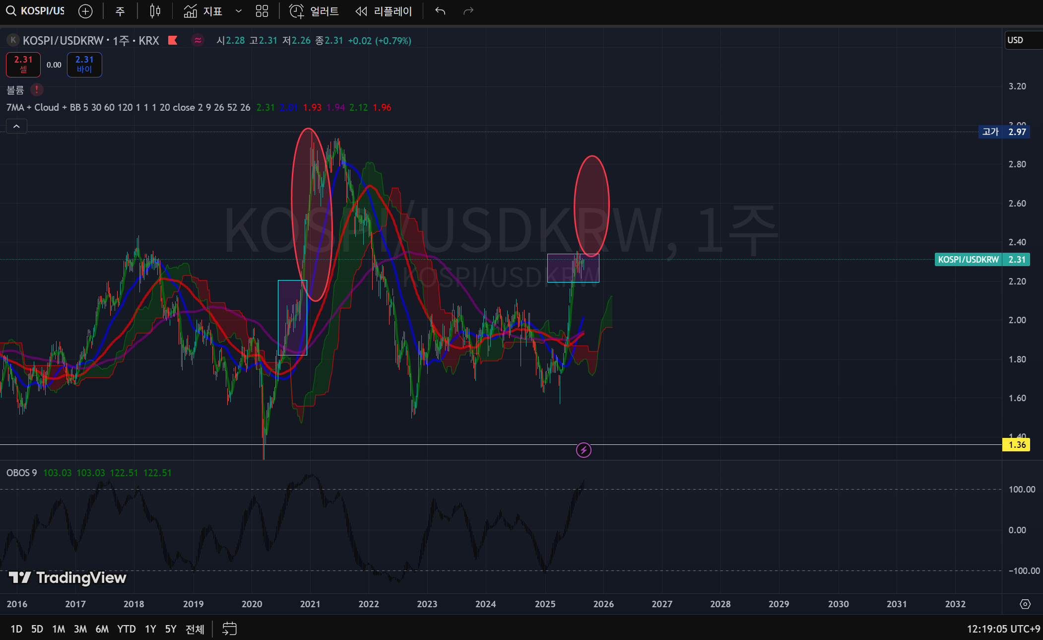 일단 진짜 제 개인적인 생각인데 이거 환율 무너지면서 KOSPI 강세가 오는 느낌인데 아닐 수 있습니다.