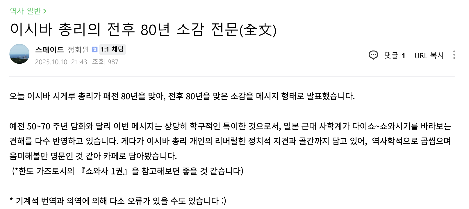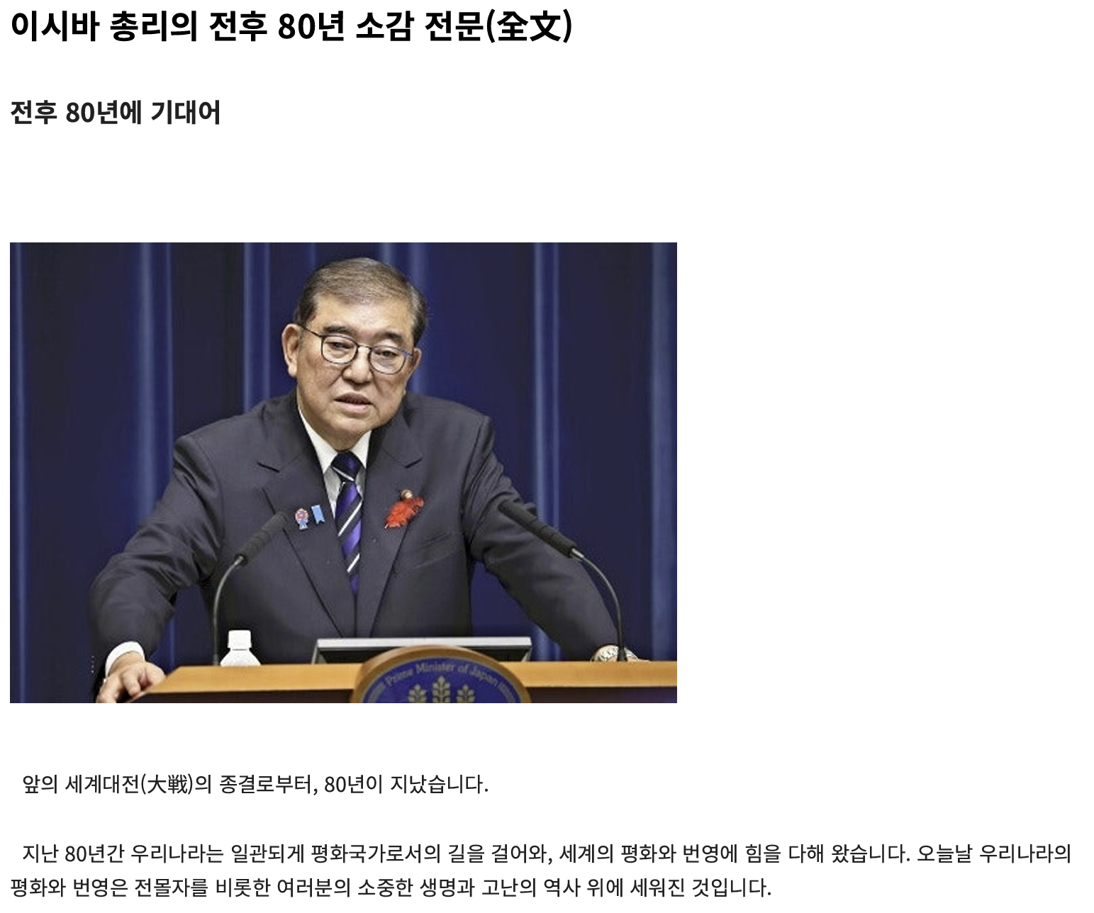 어찌 되었던 이런 이시바 총리의 말을 하나하나 살펴봅시다.
