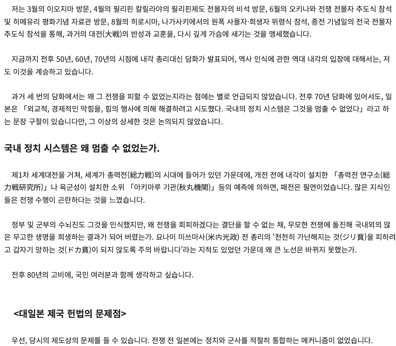 특히 위 발언은 일본 총리로써 말하기 매우 힘든말입니다.