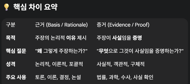 “근거”와는 다릅니다. 왜냐면 “근거”는 주장이기 때문입니다.