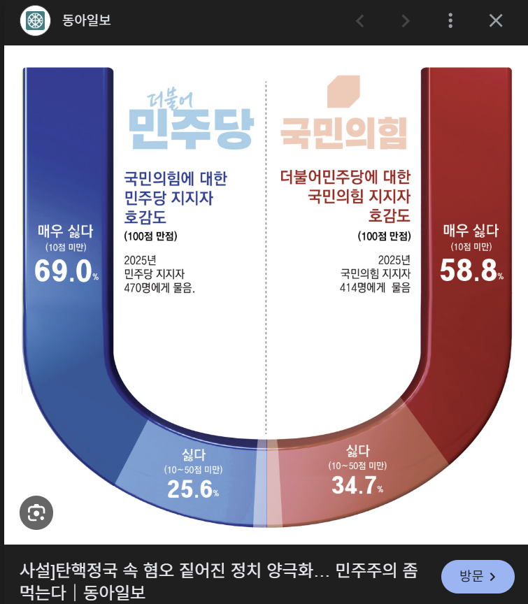 현재 대한민국의 정치적 여론의 상황은 단군이래 가장 “양극화” 되어있습니다.