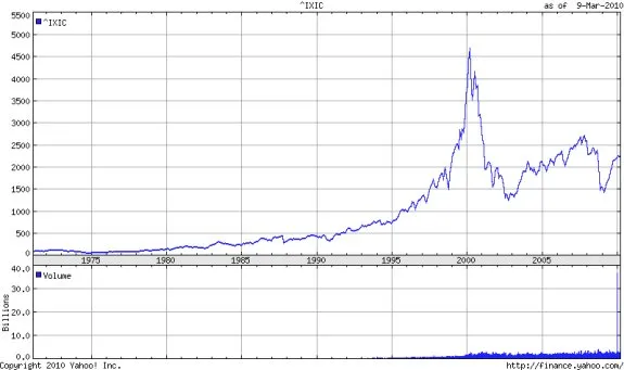 - 극단적 밸류에이션: “수익이 없는” 기업들의 가치가 400%씩 폭등했다. 나스닥 지수는 1995년 1,000 미만에서 2000년 5,000 이상으로 5배 폭발했다.