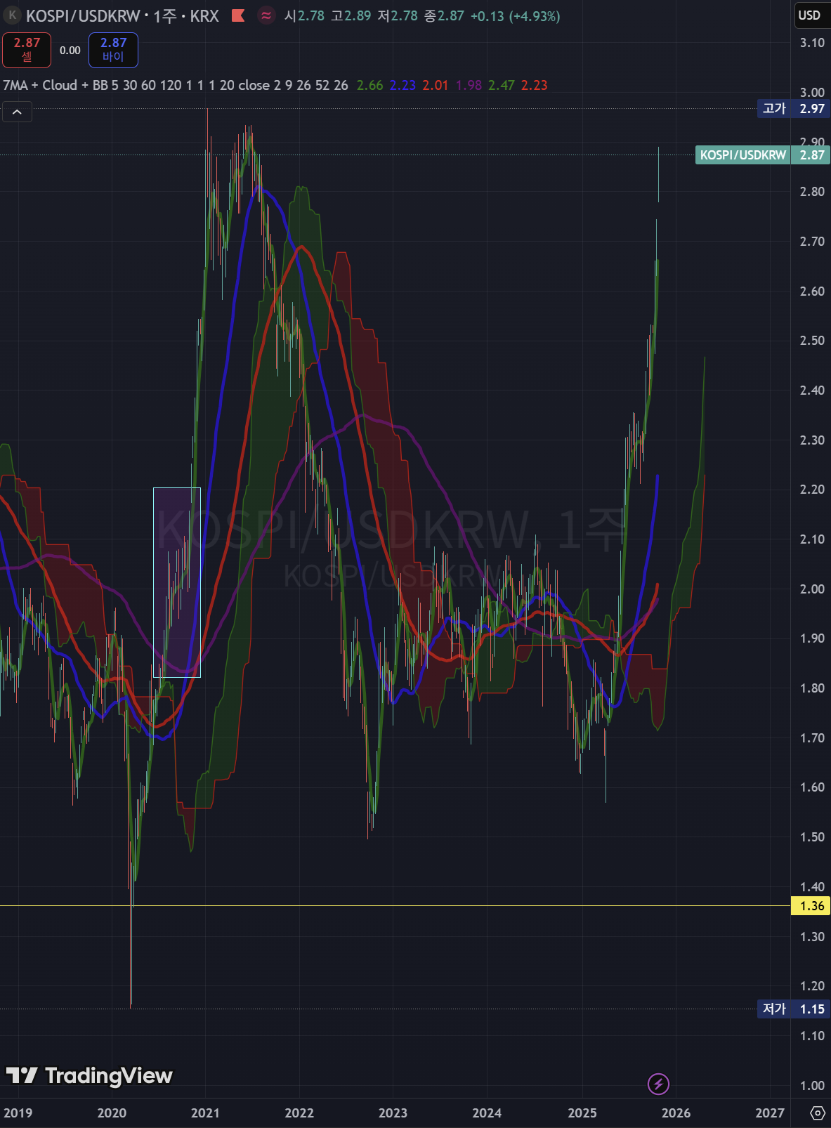 달러로 환산하면 아직 2021년 고점을 못 넘겼습니다.