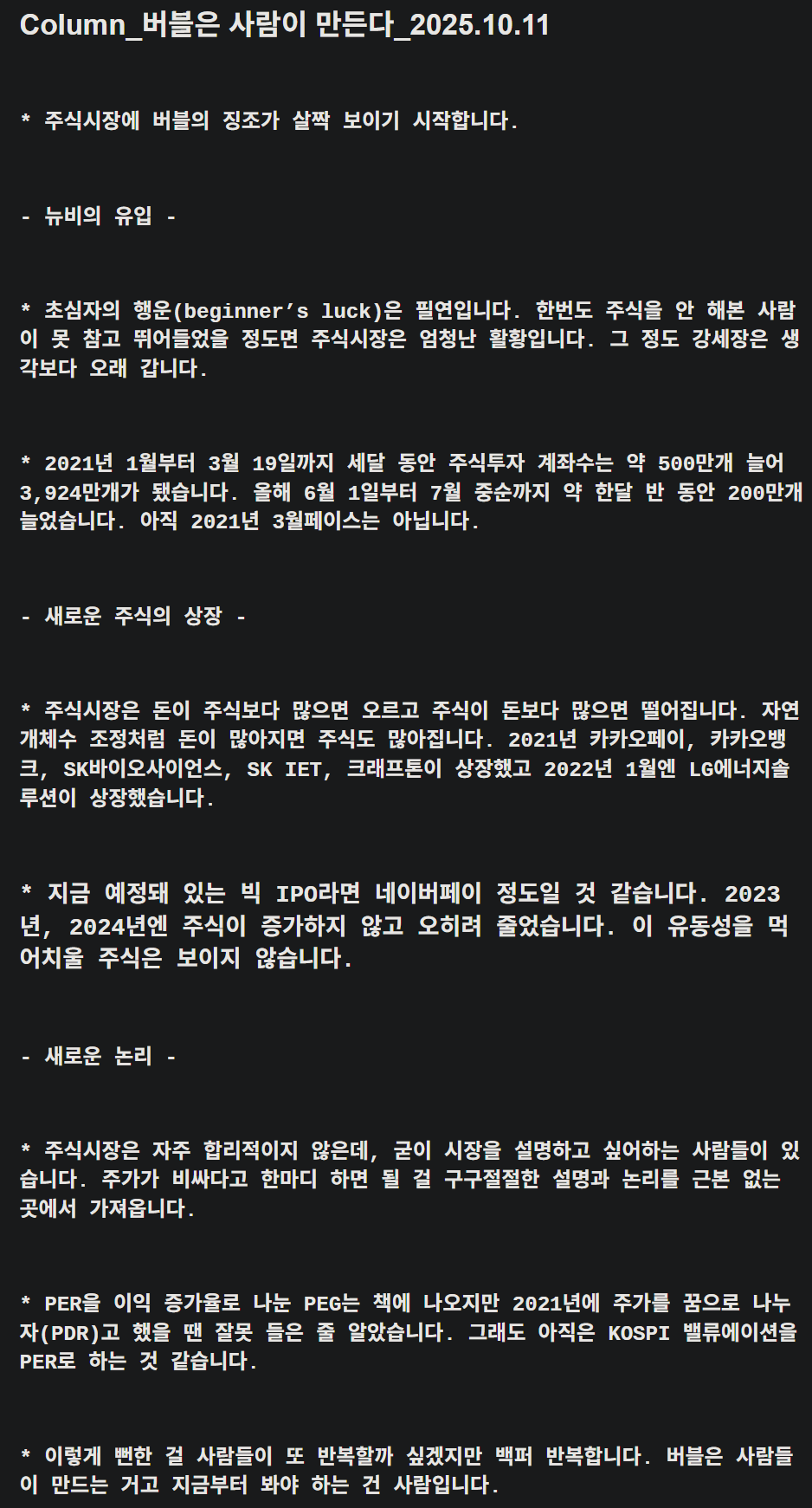 주식시장은 자주 합리적이지 않은데, 굳이 시장을 설명하고 싶어하는 사람들이 있습니다. 주가가 비싸다고 한마디 하면 될 걸 구구절절한 설명과 논리를 근본없는 곳에서 가져옵니다.