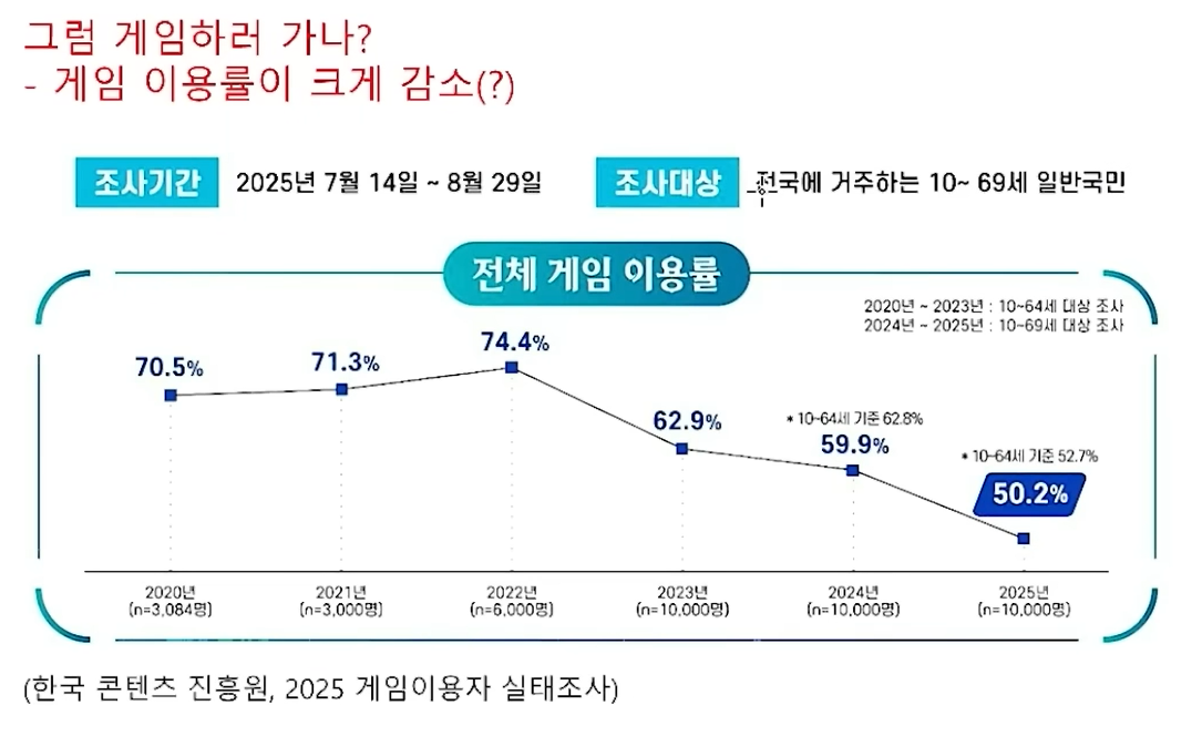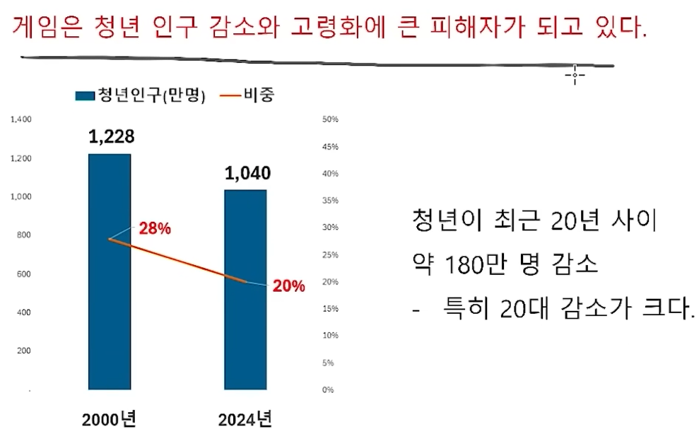청년이 감소하다 보니 게임을 하는 사람이 줄어듬