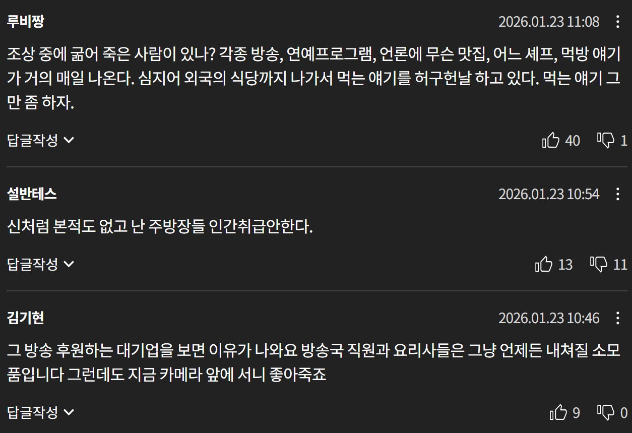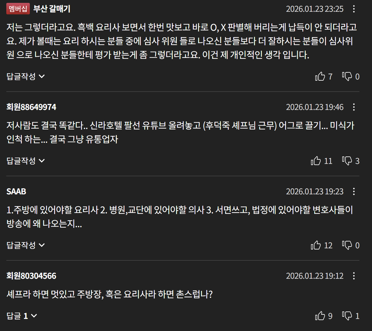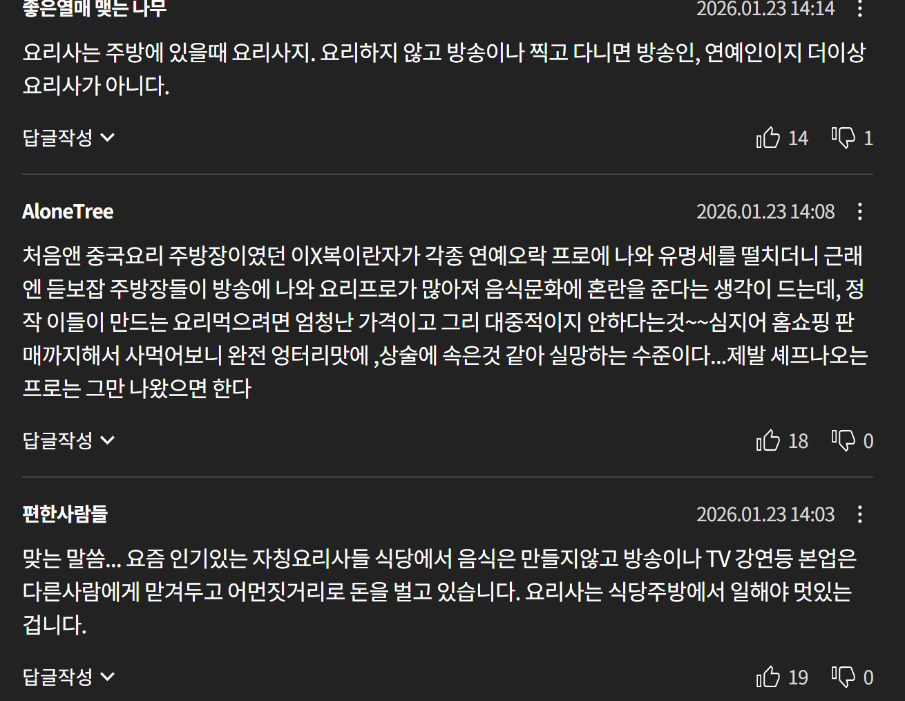 “인기가 있을 때는 괜찮지만, 요즘엔 뭐 하나만 터지면 과거 사생활이 봇물 터지듯이 드러나잖아요. 기본적으로 셰프의 본업은 요리인데, 너무 과하게 유명해져서 잡음이 생기면 본업에도 지장을 주니. 우리가 요리사의 사생활까지 너무 알 필요는 없지 않나 싶습니다.”