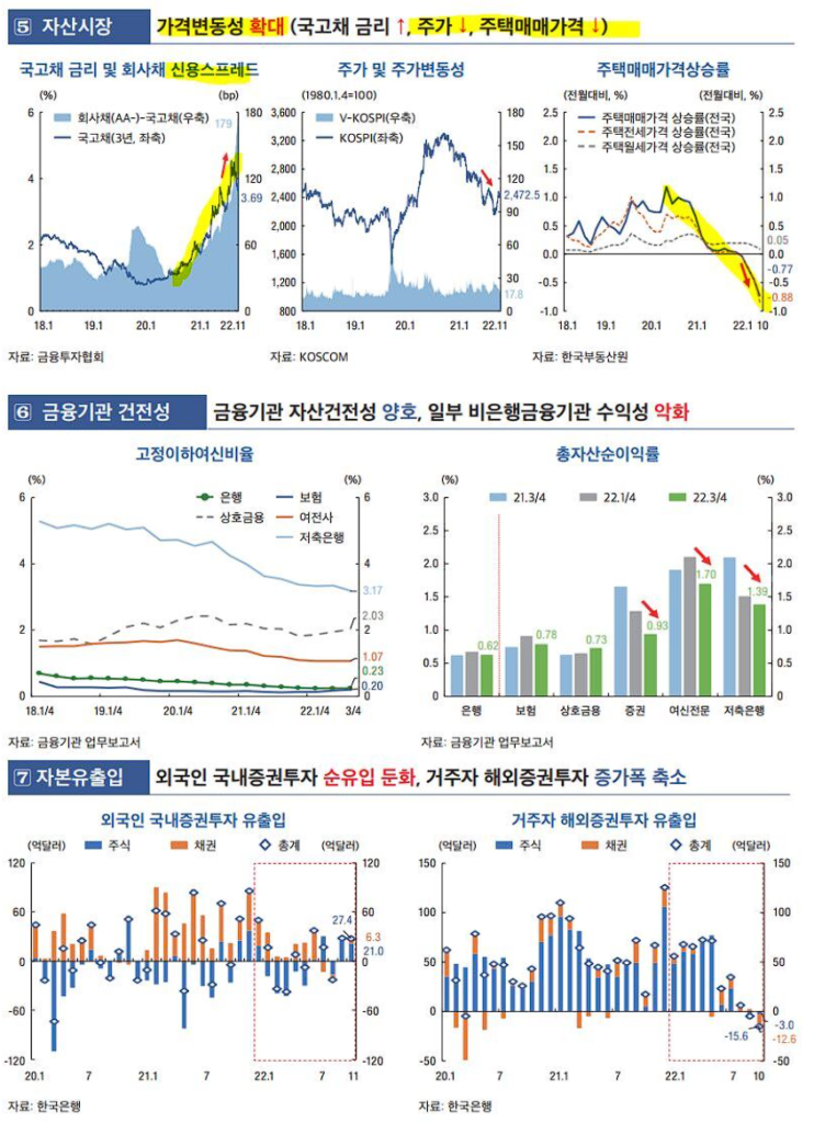 - “우크라이나 전쟁의 전개 양상에 따라 국제 원자재 가격이 급등락할 수 있으며, 중국의 방역 조치 완화 및 감염병 상황 변화가 글로벌 경제에 미치는 영향도 예단하기 어렵다”